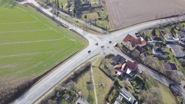 Die Einmündungen in die B1 jeweils von Heyersum und von Betheln kommend sind hier noch seitlich versetzt.