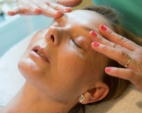 | Augenmassage mit Edelsteinen und Augenvliesmaske. | |